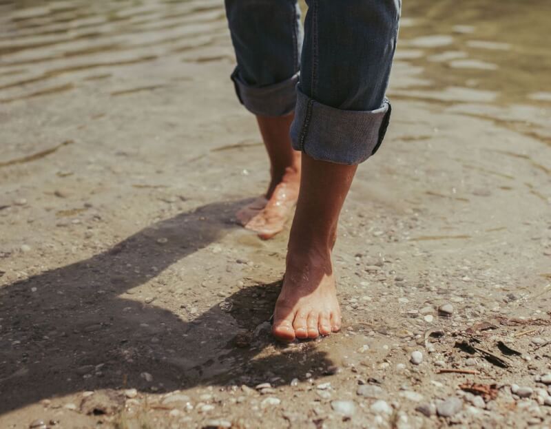 Atme bewusst in deine Füße hinein. Stell dir vor, wie dein Atem dorthin fließt. Was spürst du? Wärme, Kribbeln oder Ruhe? – Wenn du keine Änderung spürst, ist dies okay. Spüre eine Weile hinein.