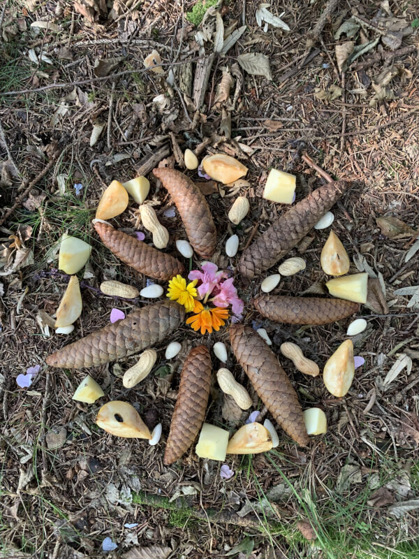 Doch etwas fehlt mir: Die Emotionen. Deine Gefühle. Naturkreis aus Zapfen und Steinen als Symbol für in dir ankommen und den Vierklang aus Körper Geist Seele und EmotionenOhne sie bleibt der ganzheitliche Ansatz meines Erachtens unvollständig, denn sie verbinden alles miteinander: Sie zeigen sich im Körper, sie beeinflussen deine Gedanken, sie prägen deine Entscheidungen.